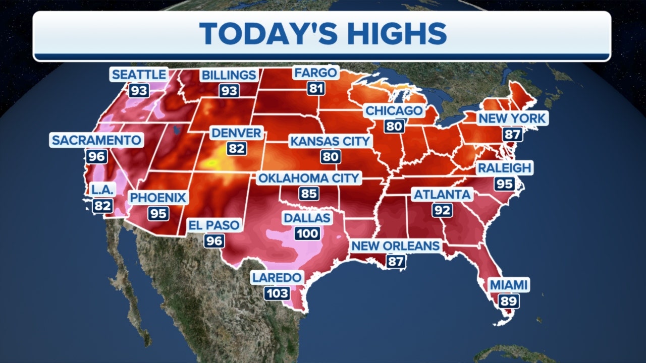 Relatively cooler air will move into the Plains over the next few days, bringing some relief.