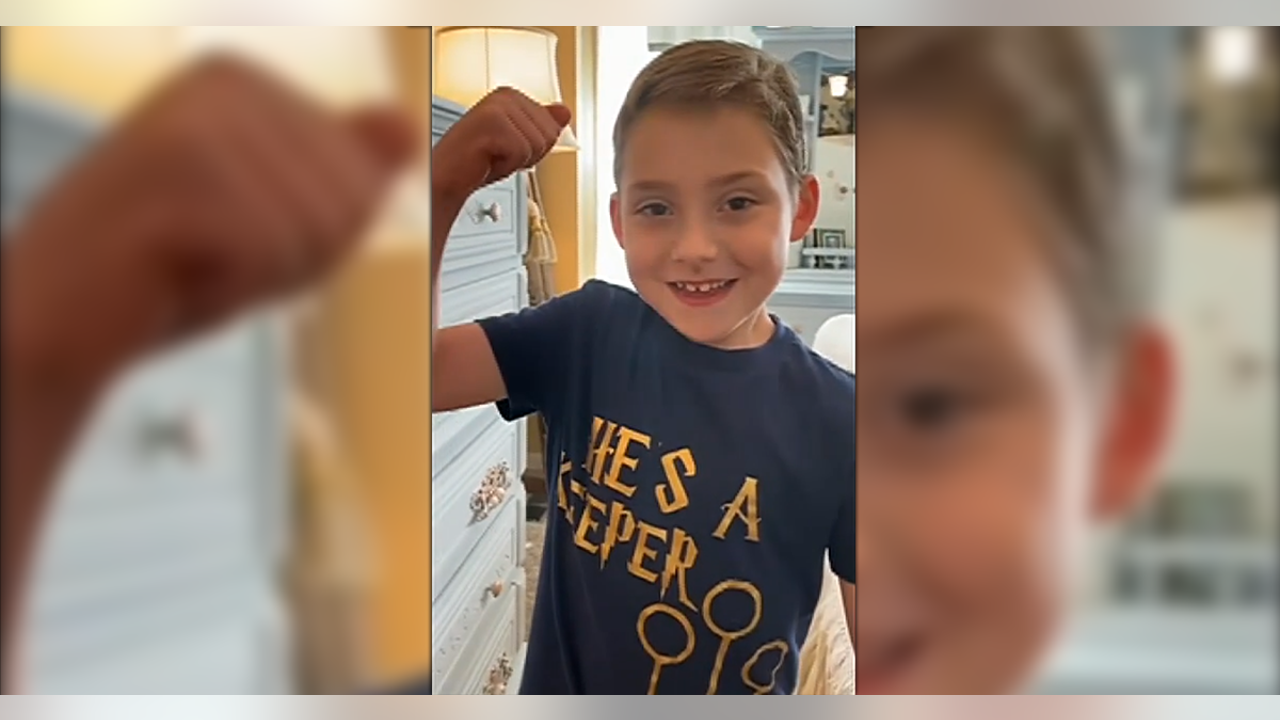 A six-year-old Tennessee boy who has cystic fibrosis said he has beaten COVID-19 after testing positive for the virus. (Courtesy - Sabrina Bostain via Storyful)