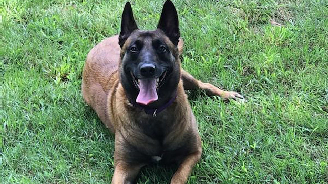 Roux, a 3-year-old Belgian Malinois, was adopted 15 months earlier. (Franklin Fire Department)