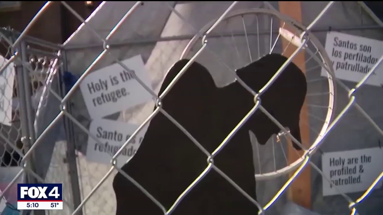 A Dallas church set up an outdoor nativity depicting the Holy Family behind a chain-link fence to highlight migrant and refugee issues. (Fox 4 Dallas)