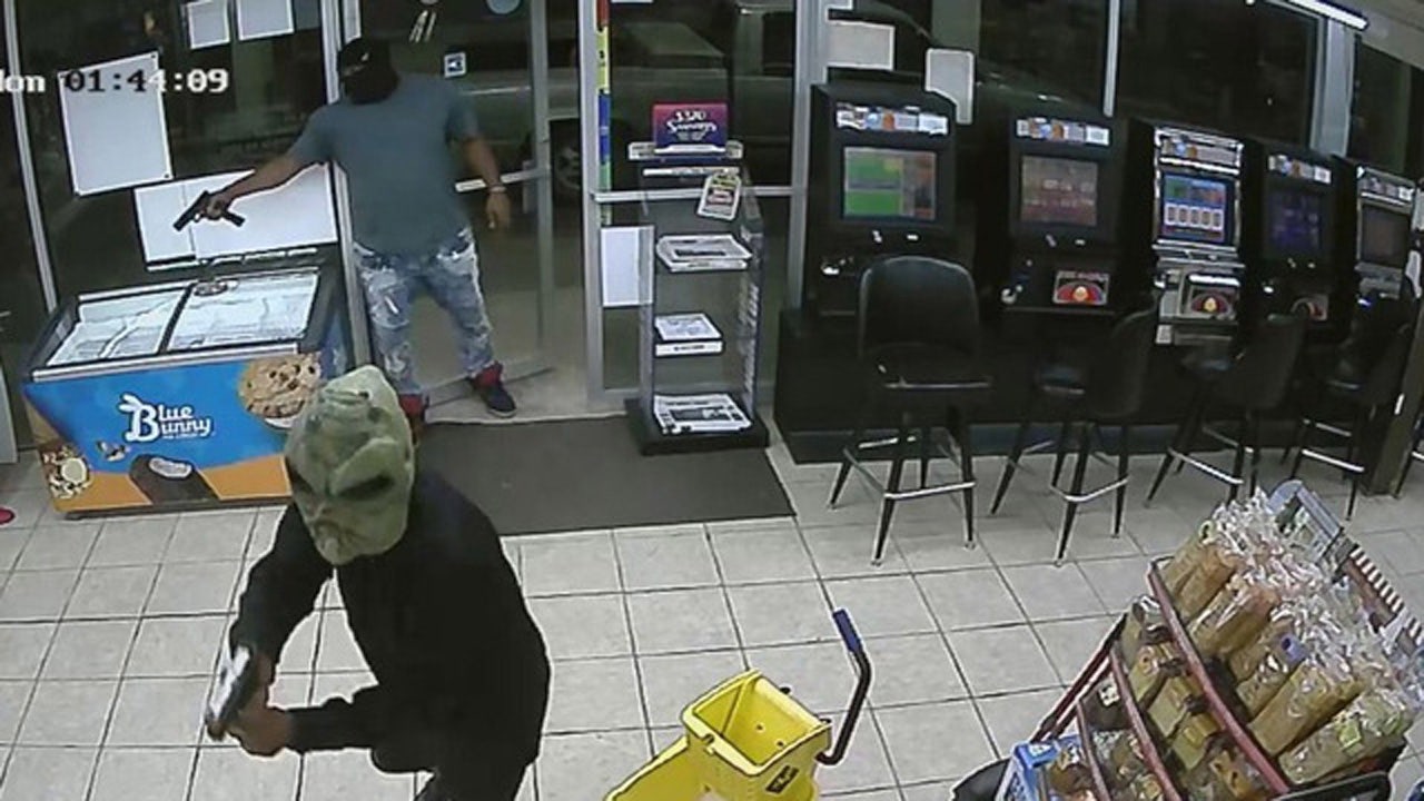 Surveillance images released by police showed the suspects entering the store, with weapons drawn.