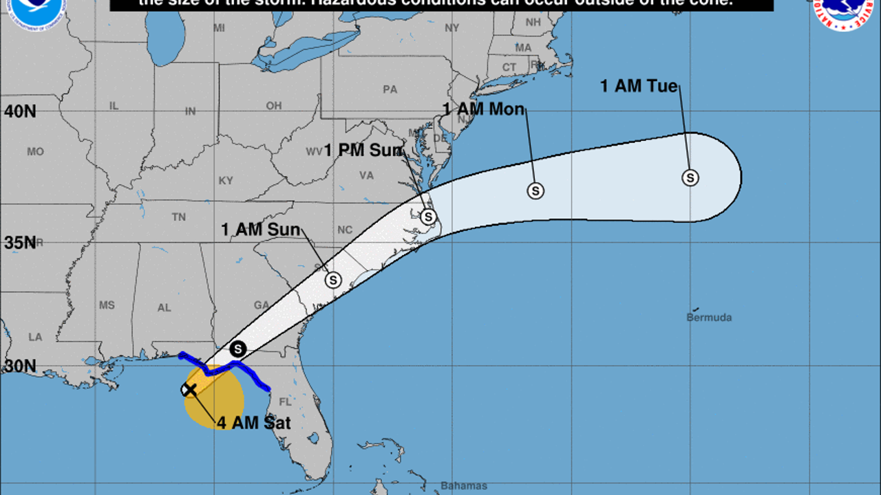 Nestor's cone as of early Saturday morning (National Hurricane Center)