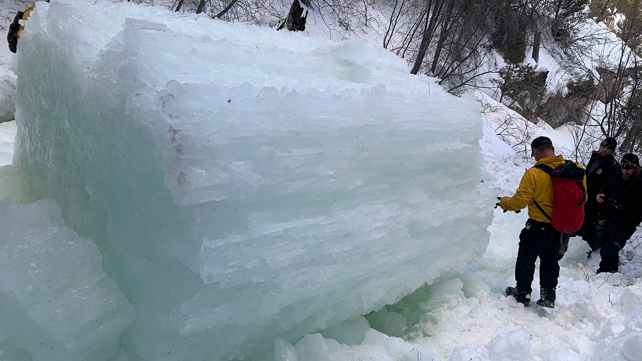 The ice column fell onto three climbers at Raven Falls in Duchesne County, Utah, near Indian Canyon on Sunday. (Duchesne County Sheriff’s Office)
