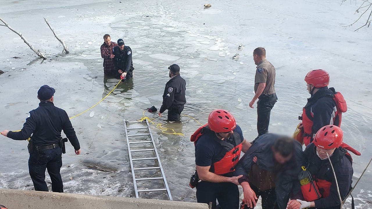 Officers responded to reports that two teenagers had fallen through the ice covering the 21st Street Pond in Ogden, police there said. After arriving, officers found one of the teens had managed to get out of the water while the other remained trapped in the ice.