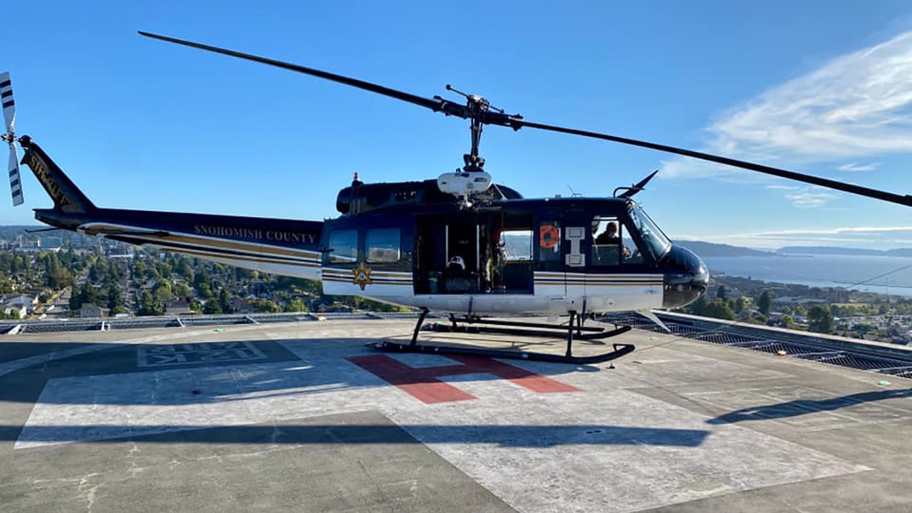A SnoHawk10 helicopter crew helped rescue the pinned hiker. (Snohomish County Sheriff's Office Helicopter Search and Rescue Team / File)