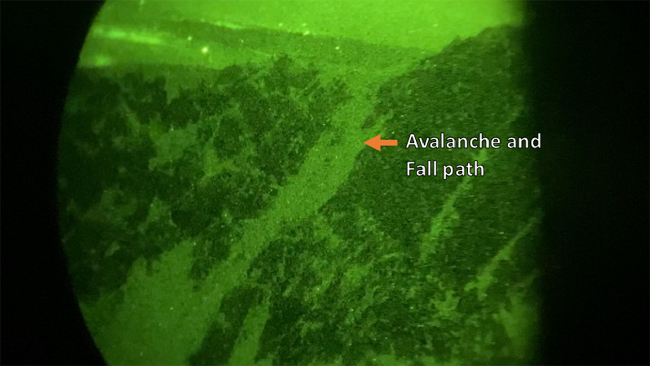 "During that search they saw a flashing light near a boulder field slightly below the avalanche runout, and more than 1,200 feet below where he initially fell," NAS said.