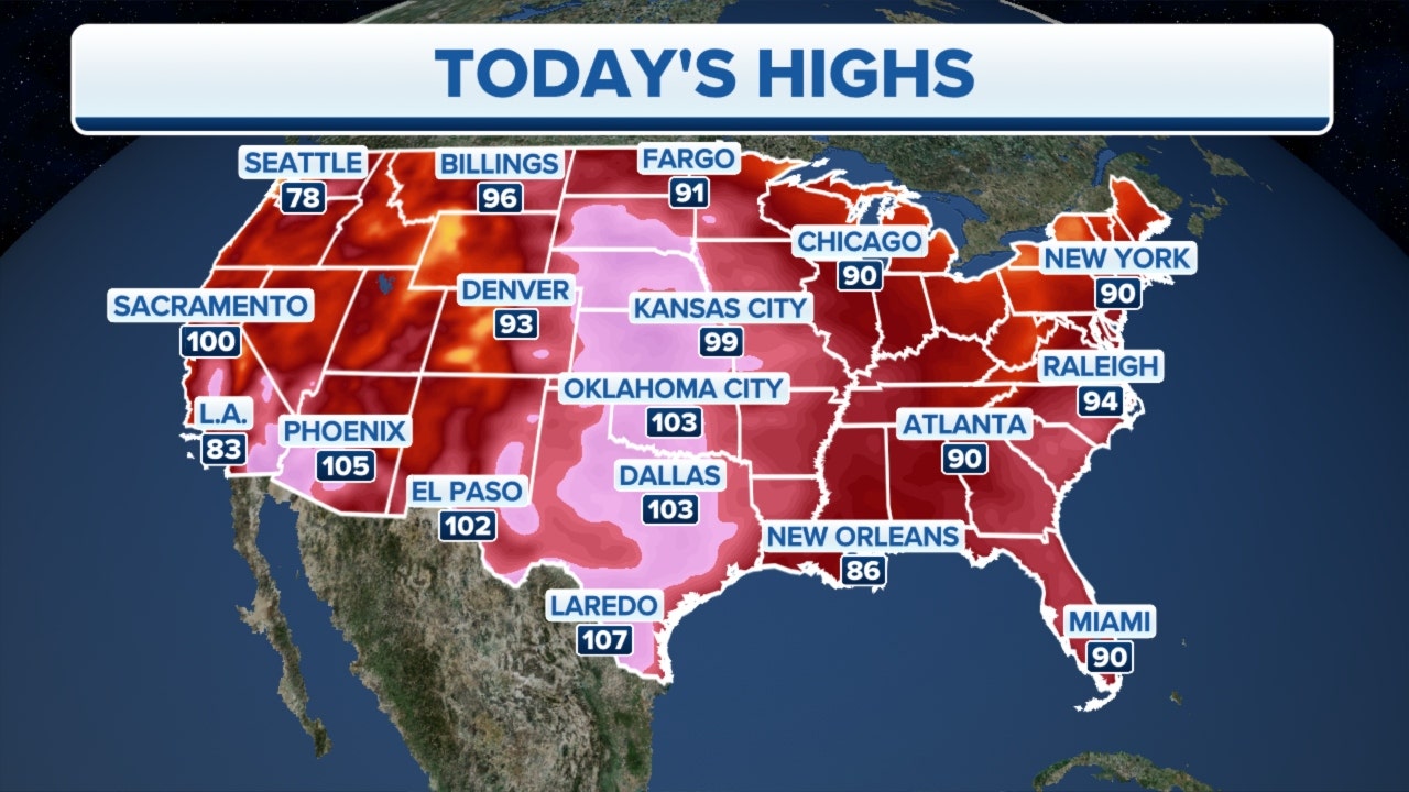 Hot weather and humidity target the Plains and will move eastward later this week.