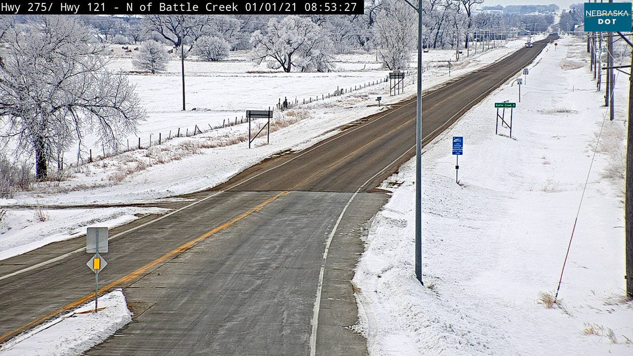 To the west in Nebraska, NWS Omaha reported freezing fog and snow and warned of slick roads.