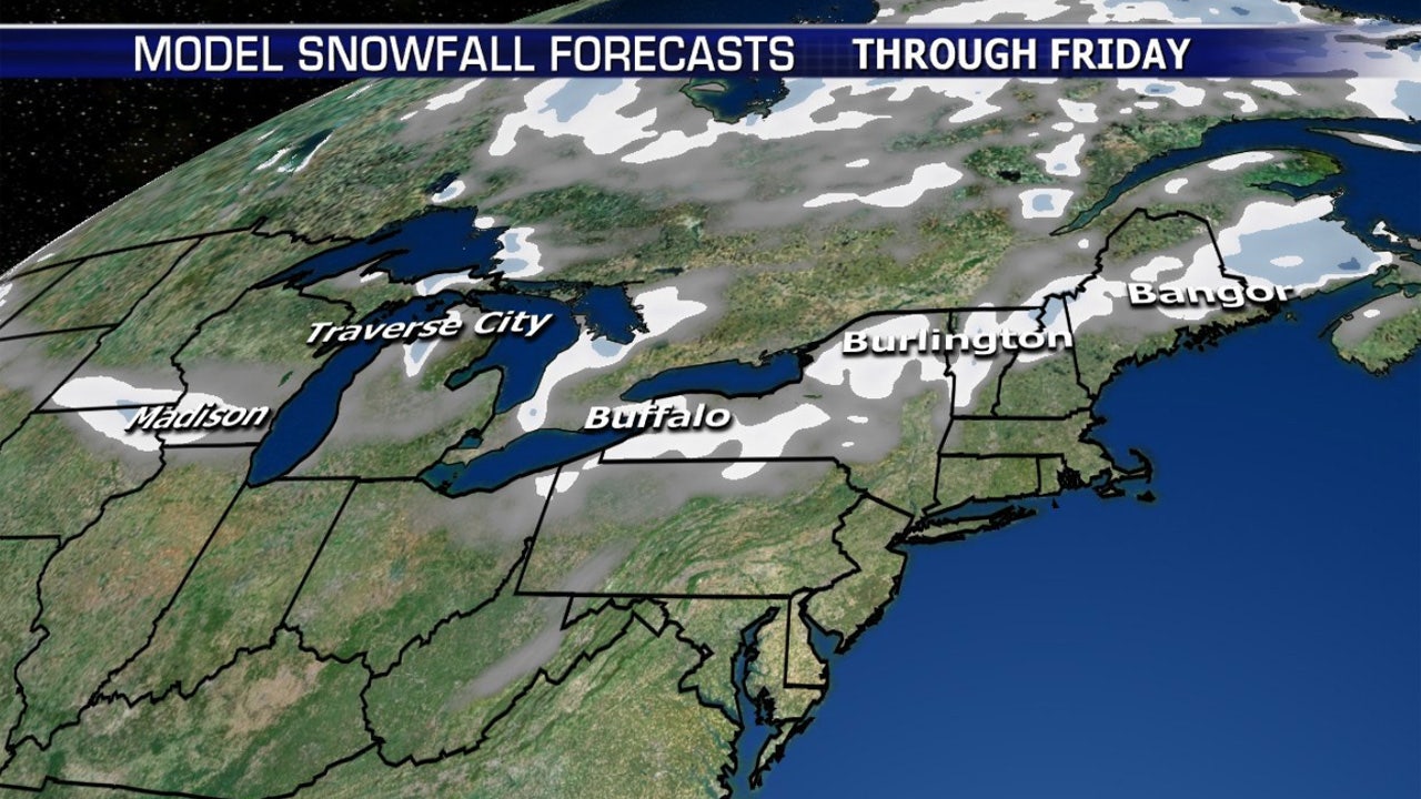 The National Weather Service's Weather Prediction Center said a storm system is forecast to produce the first "measurable snowfall of the season" for parts of the eastern Great Lakes, northern Mid-Atlantic and New England through Friday.