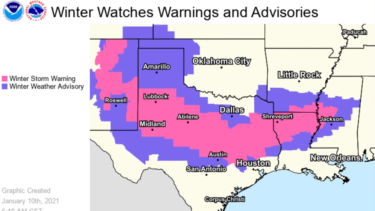 "Heavy snow and hazardous travel conditions are likely, especially in Texas," the Weather Service tweeted Sunday morning.