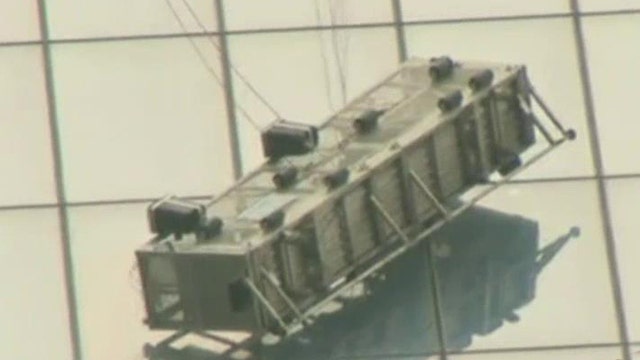 The incident began unfolding shortly before 1 p.m. Wednesday at 1 World Trade Center, the nation's tallest skyscraper. Television images showed one side of the scaffolding had dropped at a sharp angle, MyFoxNY.com reports. Authorities soon broke a window on a nearby floor and pulled the unidentified employees to safety.