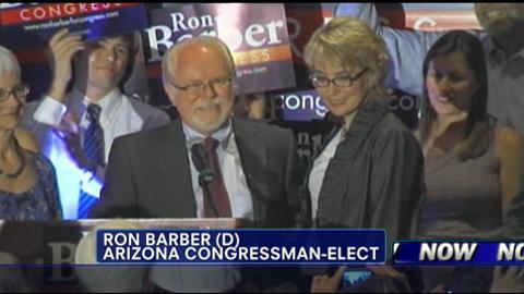 Tuesday, Democrat Ron Barber defeated Republican Jesse Kelly in an Arizona special election for the House seat previously held by former Rep. Gabrielle Giffords. The former Giffords’ aide has Gabby standing by his side during his acceptance speech, s