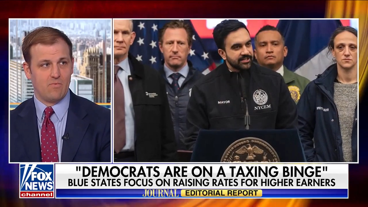 WSJ columnists Jason Riley, Kim Strassel, and Kyle Peterson discuss the Democratic "taxing binge" in New York. Governor Kathy Hochul considers delaying climate law costs, while Mayor Zoran Mamdani reverses property tax hike plans. States like Washington, with a 10% capital gains tax, also face tax revolts, impacting middle-class families and driving businesses out of high-tax blue states.