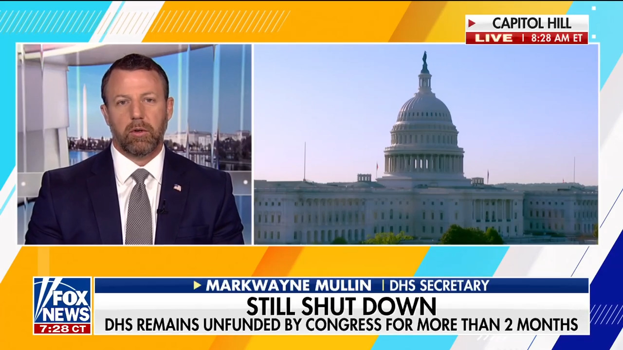 DHS Secretary Markwayne Mullin discusses the ongoing DHS funding fight, border security challenges and more on ‘Fox & Friends.’