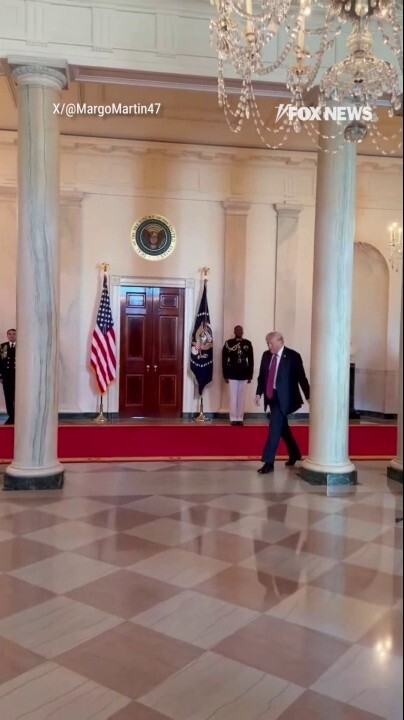 President Donald Trump welcomed the Oklahoma State University men's golf team to the White House by showing off his golf swing.