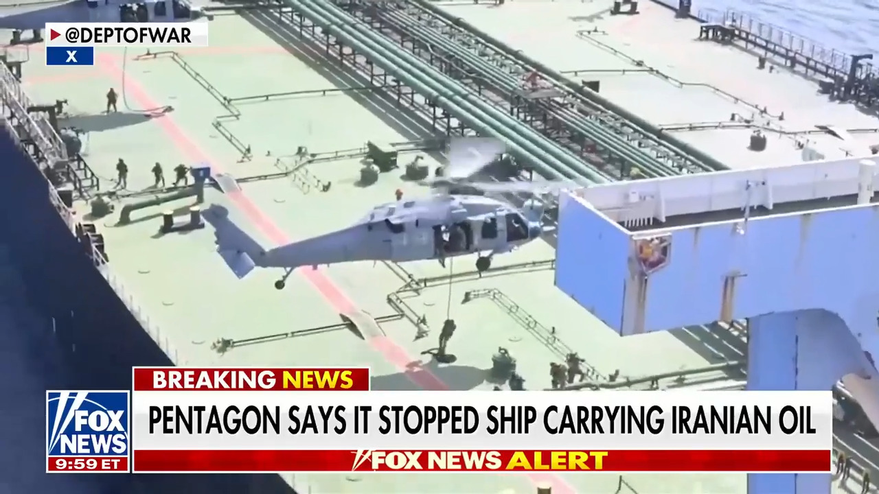 Lucas Tomlinson reports on U.S. forces interdicting an Iranian oil tanker in the Indian Ocean as part of a total naval blockade. Former Pentagon official Brent Sadler analyzes U.S. strategy amid rising tensions.