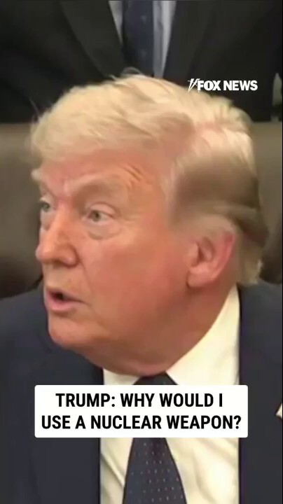President Donald Trump answers a reporter’s question about whether he would use a nuclear weapon against Iran while speaking from the Oval Office.