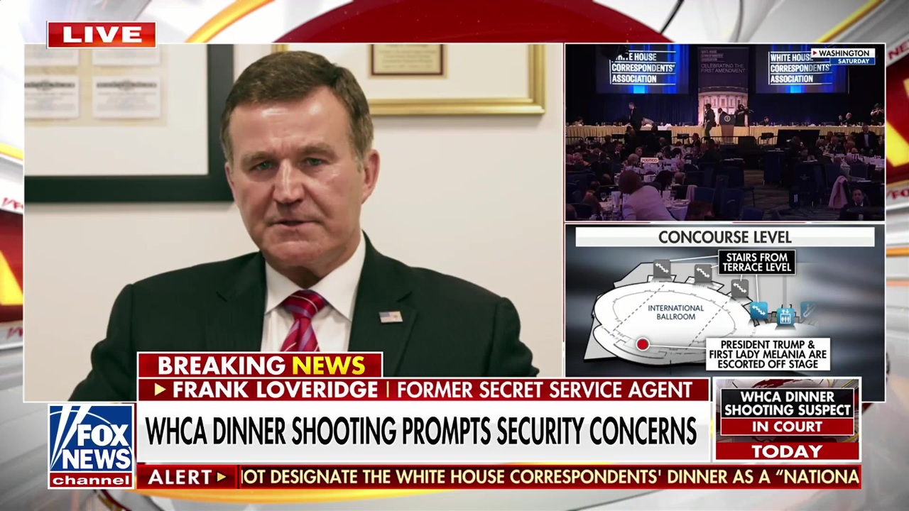 Former Secret Service agent Frank Loveridge addresses security concerns following the White House Correspondents' Association Dinner shooting. A suspect traveled from Los Angeles to Washington, D.C., by train, targeting the Trump administration, and was apprehended at the Washington Hilton after breaching security checkpoints. Loveridge reviews response protocols and venue security for future events.