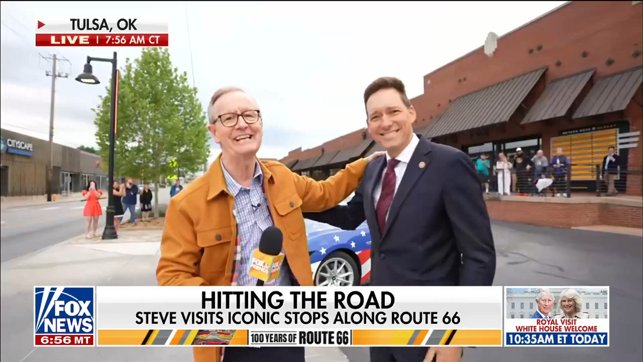 Steve Doocy starts his centennial Route 66 road trip in Tulsa, Oklahoma. He visits the Mother Road Market with Lt. Gov. Matt Pinnell and shop owner Joe Mathis, exploring the iconic highway's legacy and local businesses.