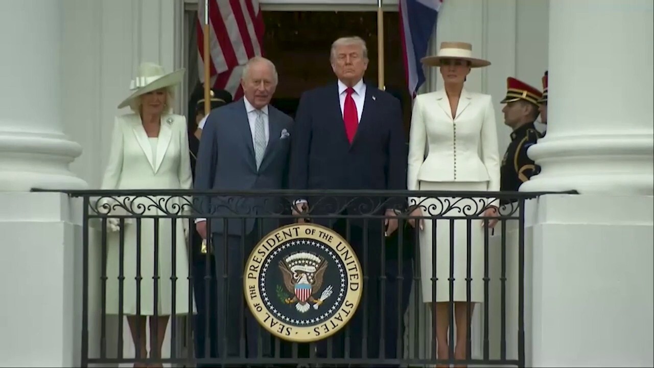 King Charles III and Queen Camilla observed the first-ever Pass in Review at the White House with President Donald Trump and first lady Melania Trump from the Truman balcony.