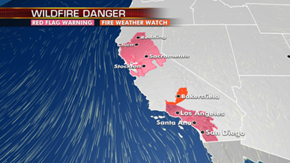Meanwhile, strong winds behind the front along with hot temperatures and dry conditions will bring critical fire danger over much of California through Friday.