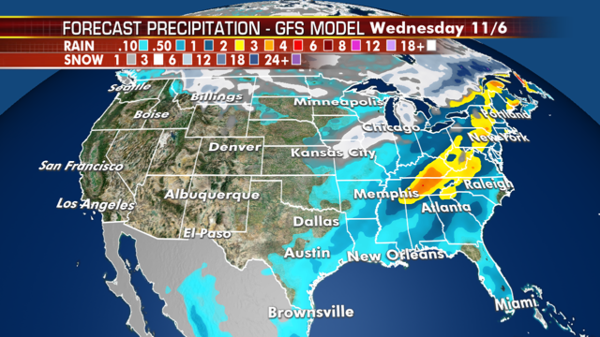 Rain will move into the eastern third of the country tomorrow making for a wet Trick or Treat for Halloween on Thursday afternoon and Thursday evening.