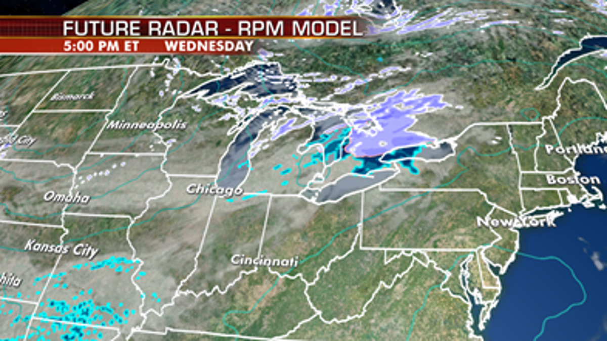 A mix of rain and snow will fall over parts of the Northern Plains, Midwest and into the Great Lakes where temperatures remain below average.