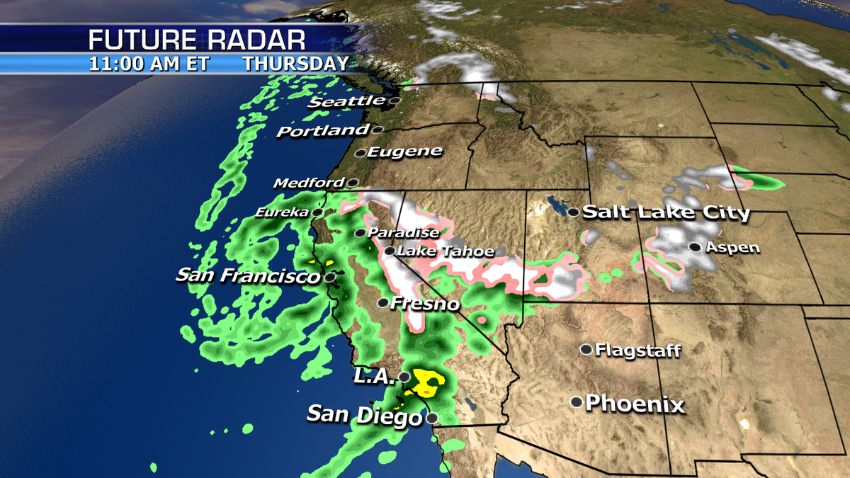 As one system moves inland across California and the West today, a more potent storm will move onshore Thursday bringing even heavier rain, snow and wind to California and much of the West.