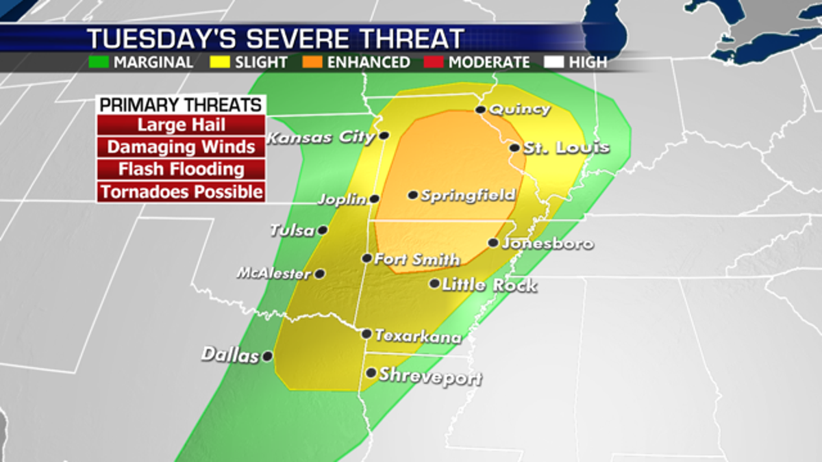 The atmospheric setup is conducive for very large hail, damaging wind gusts, flash flooding, and large, violent tornadoes.