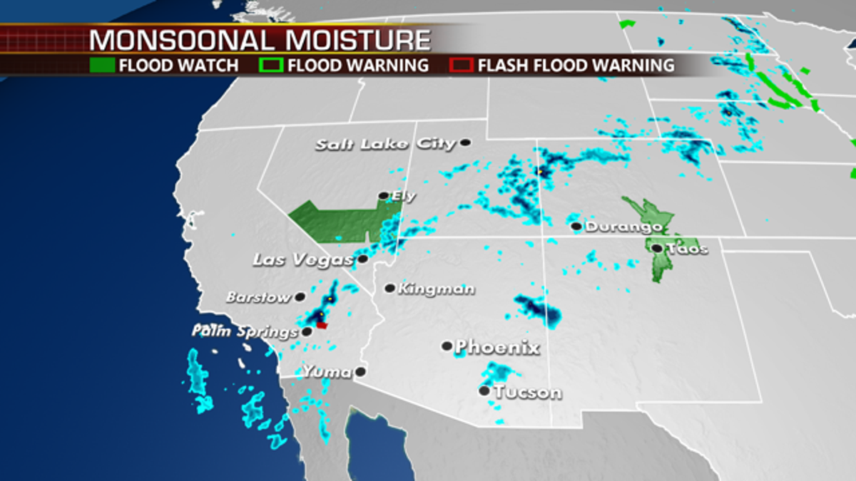 Monsoonal moisture will keep the threat for localized flooding across the Southwest through the end of the week.