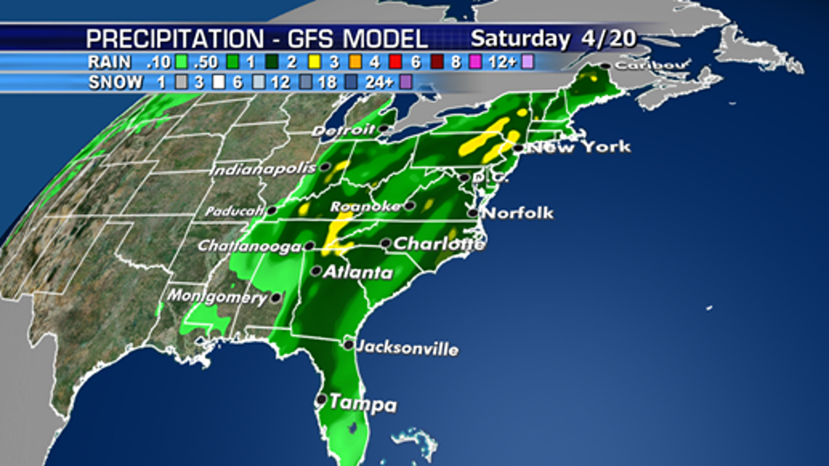 The system that brought hundreds of reports of severe weather this week including tornadoes is still on the move with widespread showers and storms over the East Coast today.