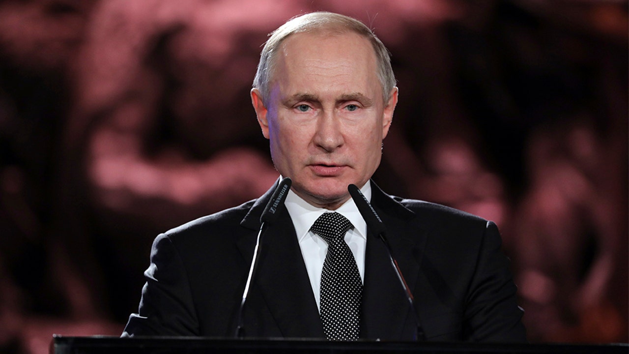 Russian President Vladimir Putin speaks during the Fifth World Holocaust Forum at the Yad Vashem Holocaust memorial museum in Jerusalem, Israel, Thursday, Jan. 23, 2020. The event marking the 75th anniversary of the liberation of Auschwitz under the title 'Remembering the Holocaust: Fighting Antisemitism' is held to preserve the memory of the Holocaust atrocities by Nazi Germany during World War II. (Abir Sultan, Pool via AP)