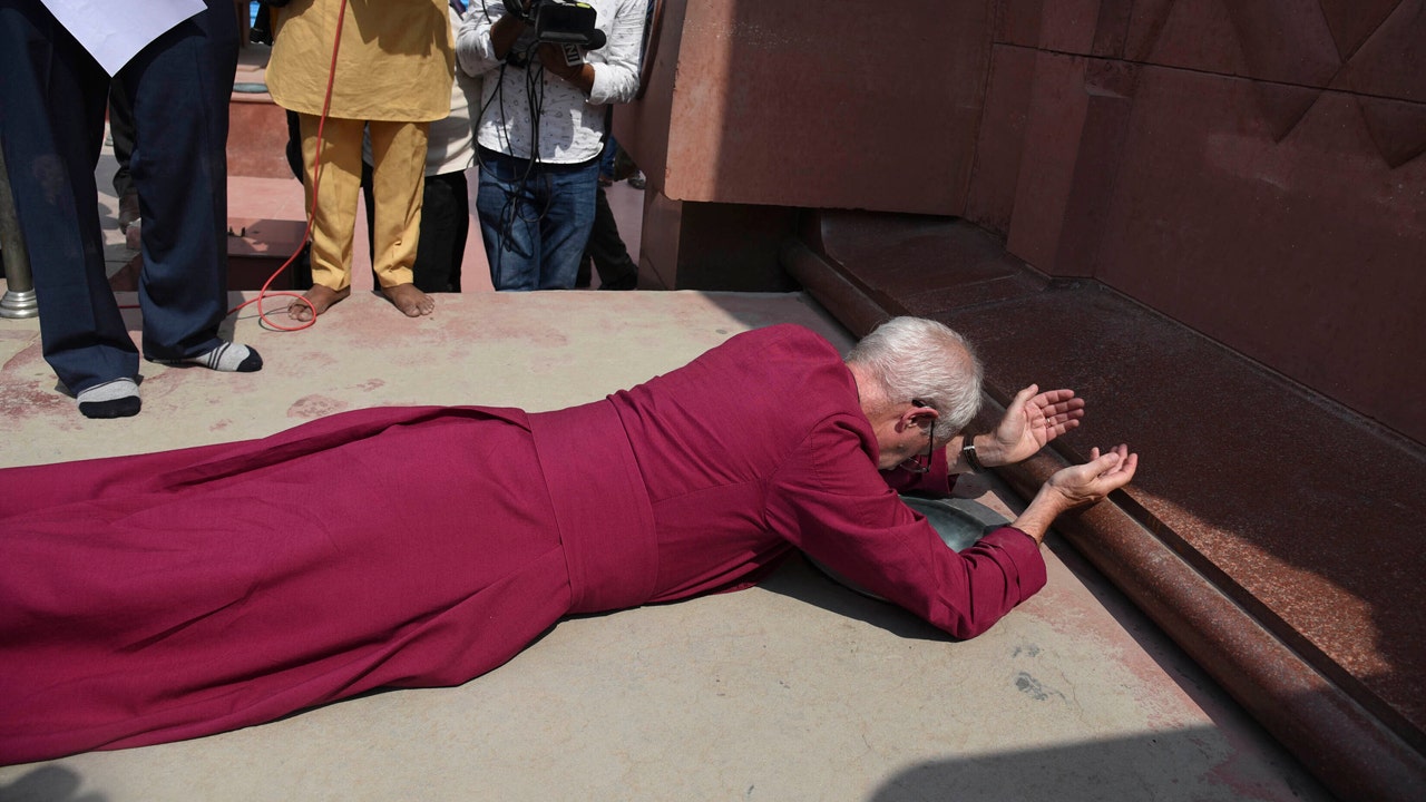 The Church of England's Archbishop of Canterbury apologized in a public way -- by falling down on the floor --for the "terrible atrocity" by British colonial forces 100 years ago in a massacre of hundreds of Indians peacefully demonstrating for independence.