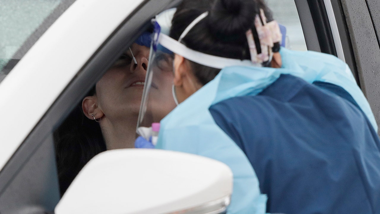 A woman receives a COVID-19 test at a drive through testing station at a beach in Sydney, Australia, Saturday, Dec. 19, 2020. Sydney's northern beaches will enter a lockdown similar to the one imposed during the start of the COVID-19 pandemic in March as a cluster of cases in the area increased to more than 40. (AP Photo/Mark Baker)