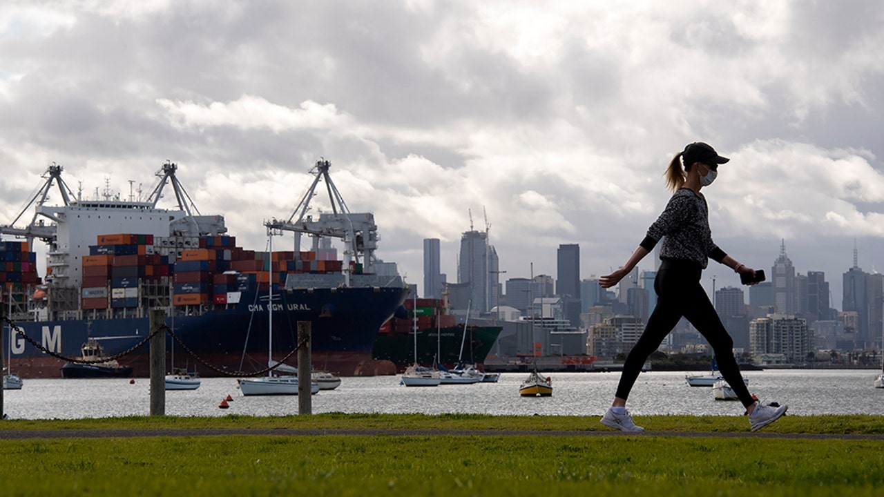 A woman takes a walk in a park during lockdown due to the continuing spread of the coronavirus in Melbourne on Aug. 6. Victoria state, Australia's coronavirus hot spot, announced last week that businesses will be closed and scaled down in a bid to curb the spread of the virus. (AP Photo/Andy Brownbill)