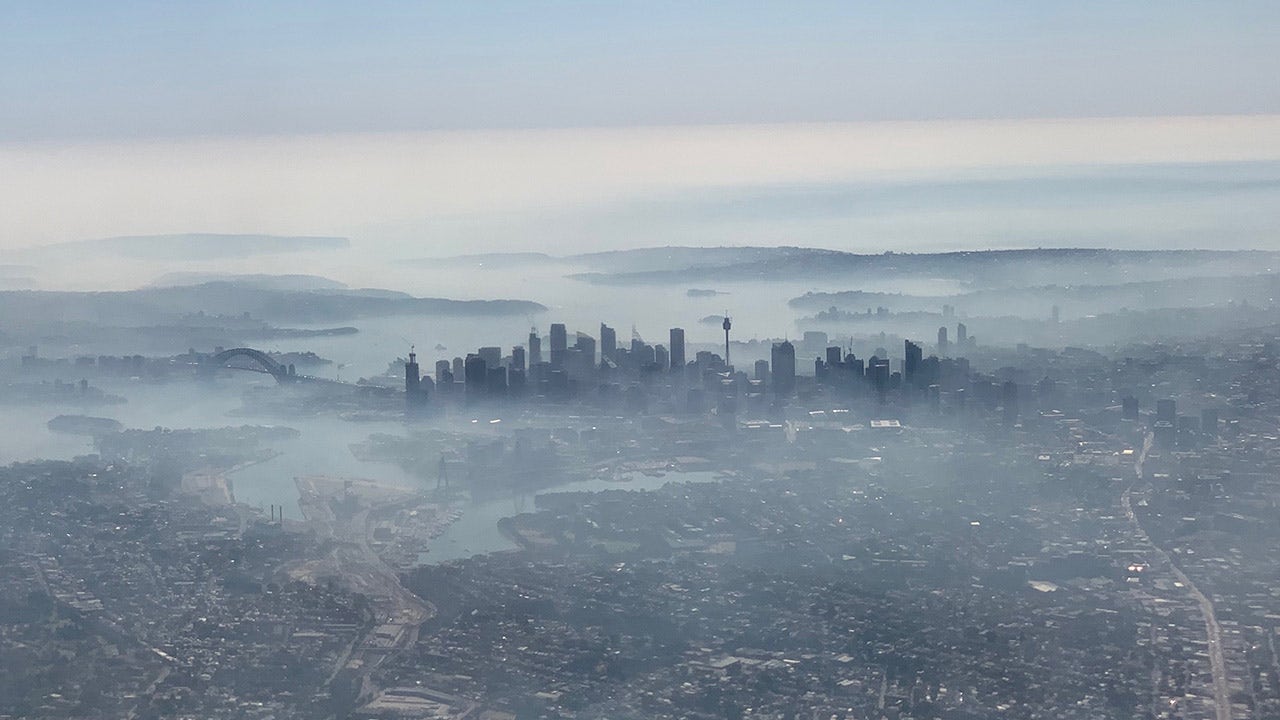 Smoke haze covers Sydney on Tuesday as wildfires have caused the air quality in the city to reach hazardous conditions. (AP Photo/Rick Rycroft)