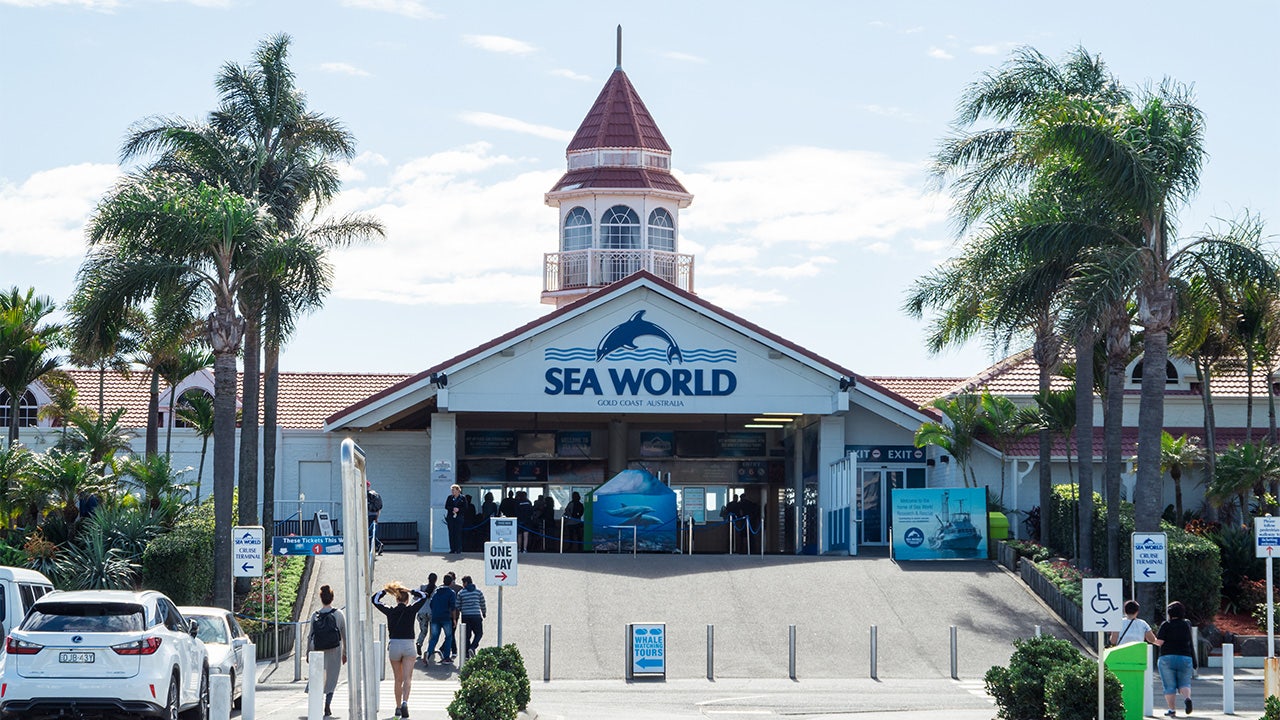 Entrance to Sea World amusement park at Main Beach on the Gold Coast, a popular tourist attraction. (iStock)