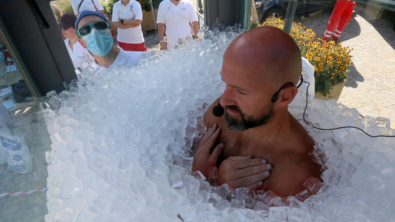 Austrian Josef Koeberl submerged himself in ice for 2.5 hours Saturday in Melk, Austria. (AP)