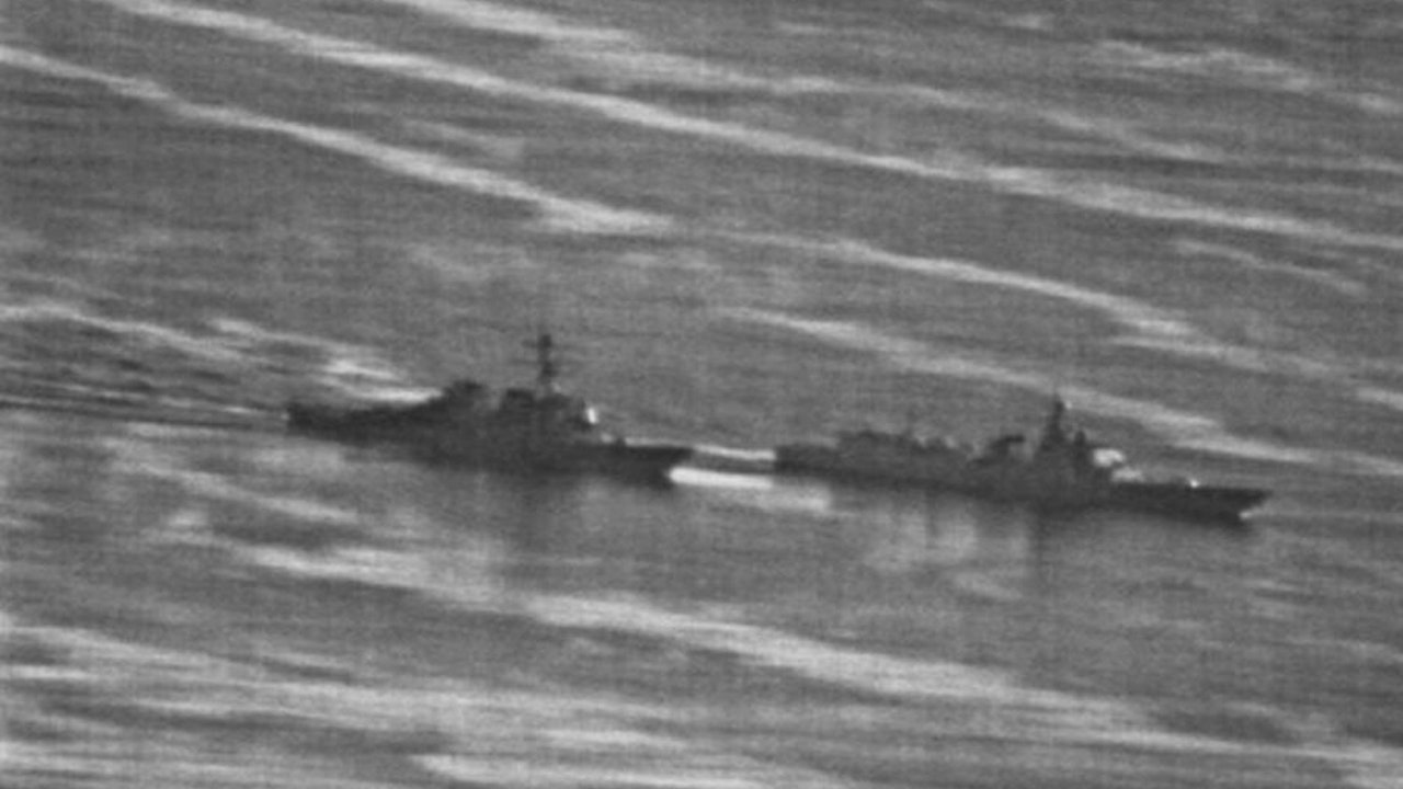 This U.S. Navy photo, first obtained by gcaptain.com, shows the incident between the USS Decatur, left, and the Luoyang. (U.S. Navy)