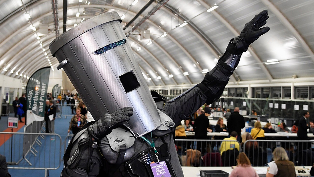 Independent candidate Count Binface poses after arriving at a counting center for Britain's general election in Uxbridge, Britain, December 12, 2019. (REUTERS)