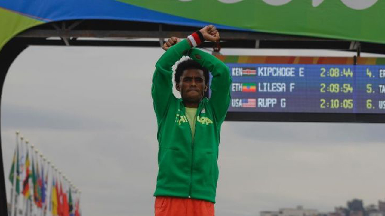 The silver medalist crossed his wrists in an attempt to draw global attention to deadly protests in his home region of Oromia. He told reporters that Ethiopia's government is killing his people and taking their resources.