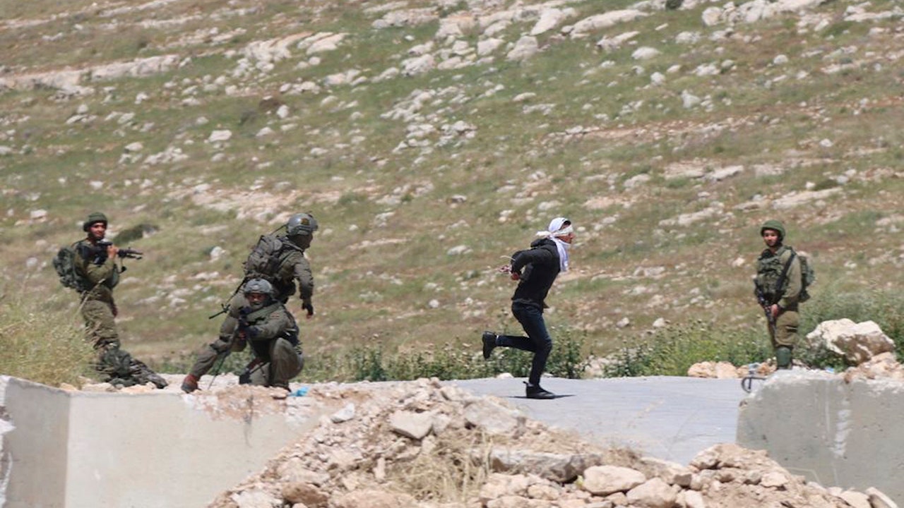 Handcuffed and blindfolded Osama Hajahjeh, 16, runs away from Israeli soldiers near the village of Tekoa, West Bank. Hajahjeh said was shot in his legs last week by Israeli soldiers while he was handcuffed and blindfolded, shortly after being arrested. (AP Photo/Mohammad Hmeid)