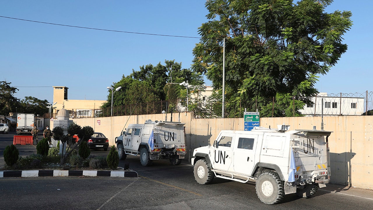 UNIFIL and civilian cars enter the headquarters of the U.N. peacekeeping force in the southern Lebanese border town of Naqoura, Lebanon, Wednesday, Oct. 14, 2020. (AP Photo/Bilal Hussein)