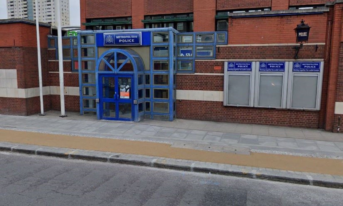 The London Metropolitan Police station in Edmonton was evacuated following the incident, which occurred just before 7 p.m. local time. A 45-year-old man was arrested on suspicion of arson and other offenses.