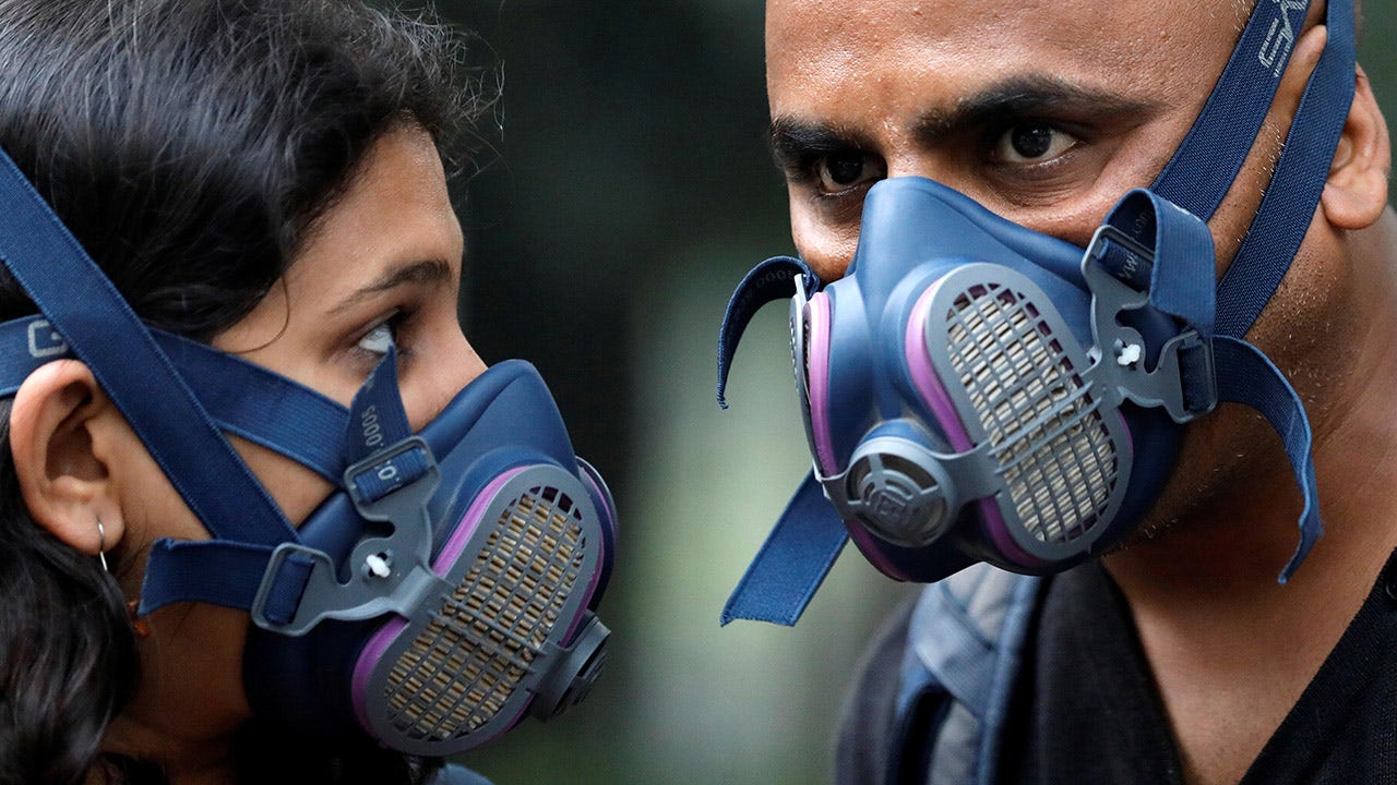 People wear masks on a smoggy evening in New Delhi, India, October 31, 2019. REUTERS/Anushree Fadnavis - RC1AF59327B0