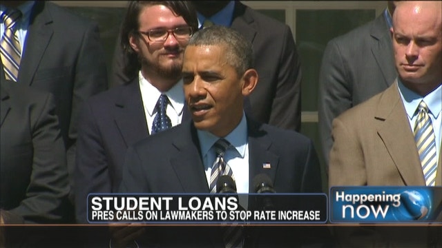 Obama made his case flanked by college students dressed in business suits and dresses during remarks in the Rose Garden on a steamy Washington morning. The event marked the beginning of a public campaign by the president to temporarily extend current student loan rates or find a long-term compromise to avoid the July 1 rate increase.