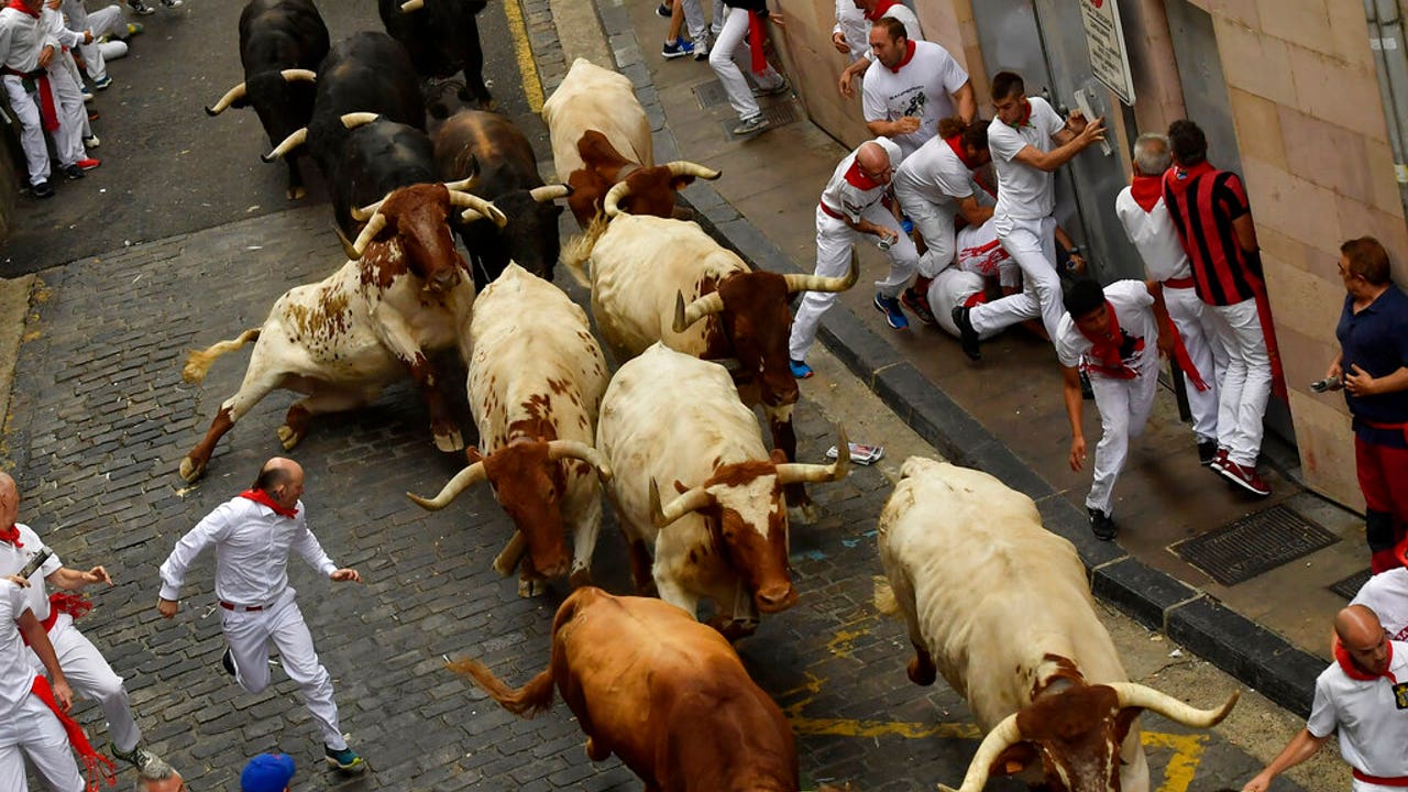 The running of the bulls — part of the San Fermin Festival in Pamplona, in northern Spain — draws roughly 1 million people to the city each year. During its nine-day run, six bulls and a herd of steer run each morning in the city's narrow streets. The bulls ultimately are killed in afternoon bullfights.