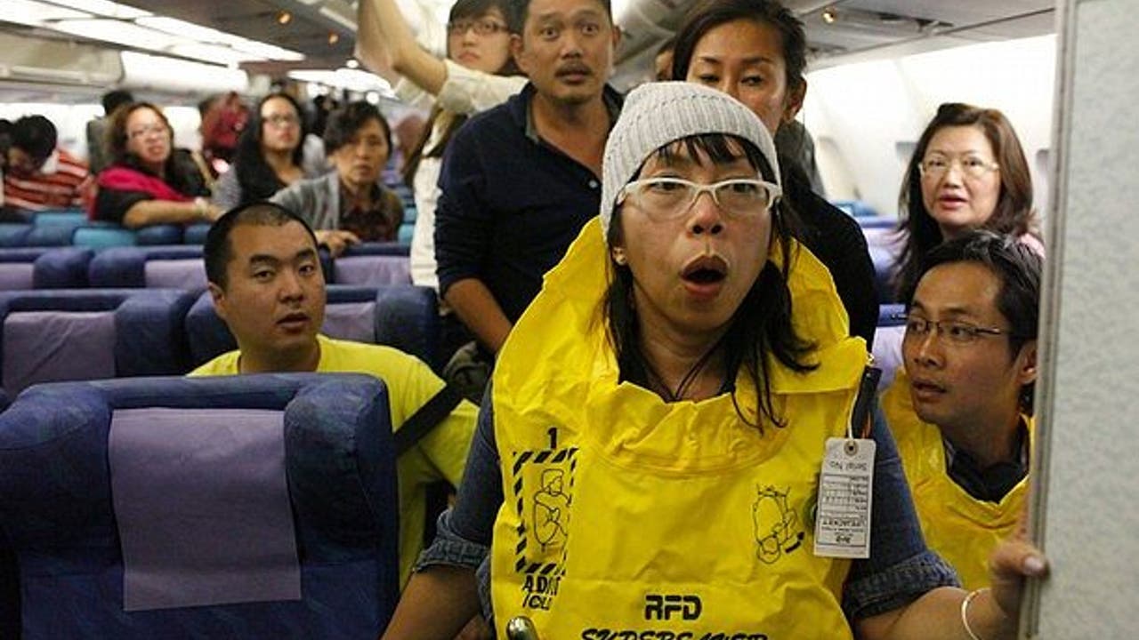 Frightened-looking passengers disembarked onto the tarmac and prayed in a terminal following the ordeal, Reuters reported.