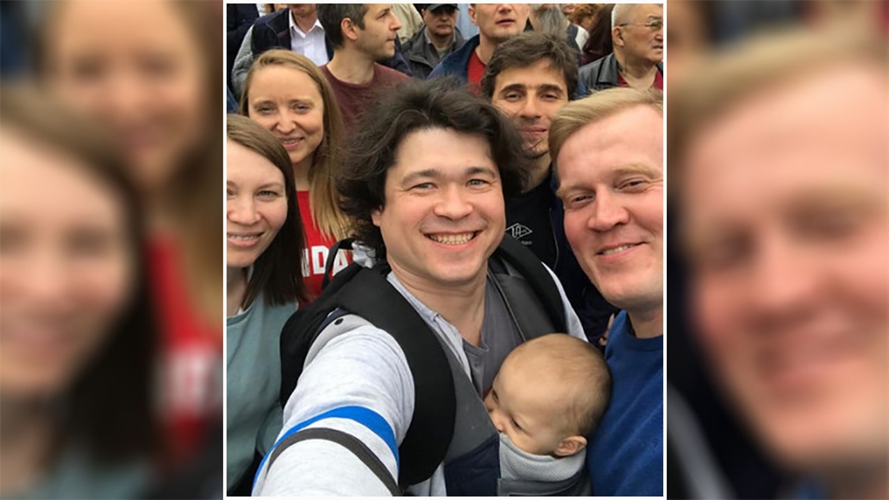 He said the couple spotted their friend Sergei Fomin, whom he described as his wife’s cousin and his best friend, and tried to get him to leave with them - handing their son to him at one point.