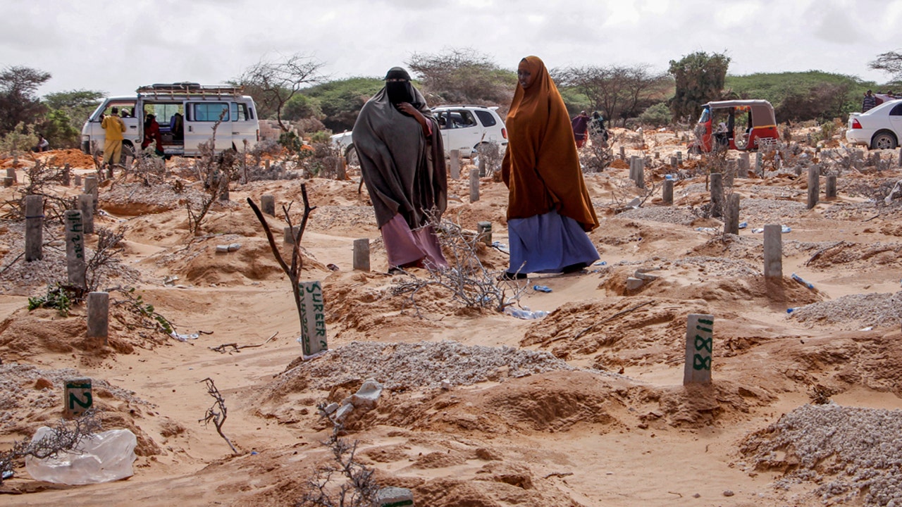 In this photo taken May 13, women walk past graves at a cemetery in Mogadishu, Somalia, following the burial of a man who died of coronavirus. Years of conflict, instability and poverty have left Somalia ill-equipped to handle a health crisis like the coronavirus pandemic. ItÕs uncertain how many cases of COVID-19 are in Somalia. (AP Photo/Farah Abdi Warsameh)